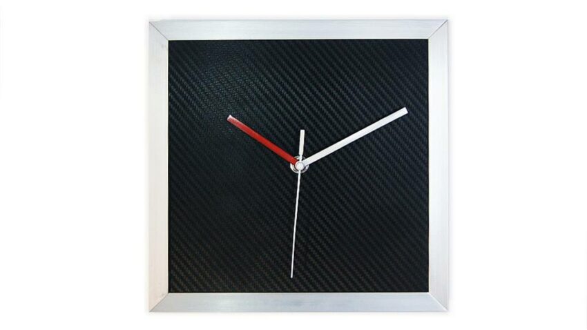 Kolejny autorski projekt zegara, w którym mniejsza tarcza i prostsze wskazówki zrekompensowałem aluminiową ramą. Podstawą tarczy ponownie stało się plexi.