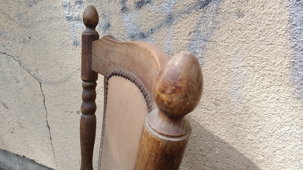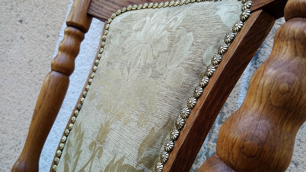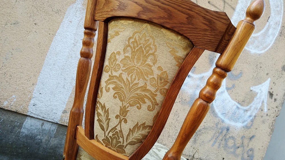 Po złożeniu całość została pokryta olejem do drewna, a następnie specjalnym woskiem. Piękno dębowego drewna znów stało się widoczne, a krzesło atrakcyjne.