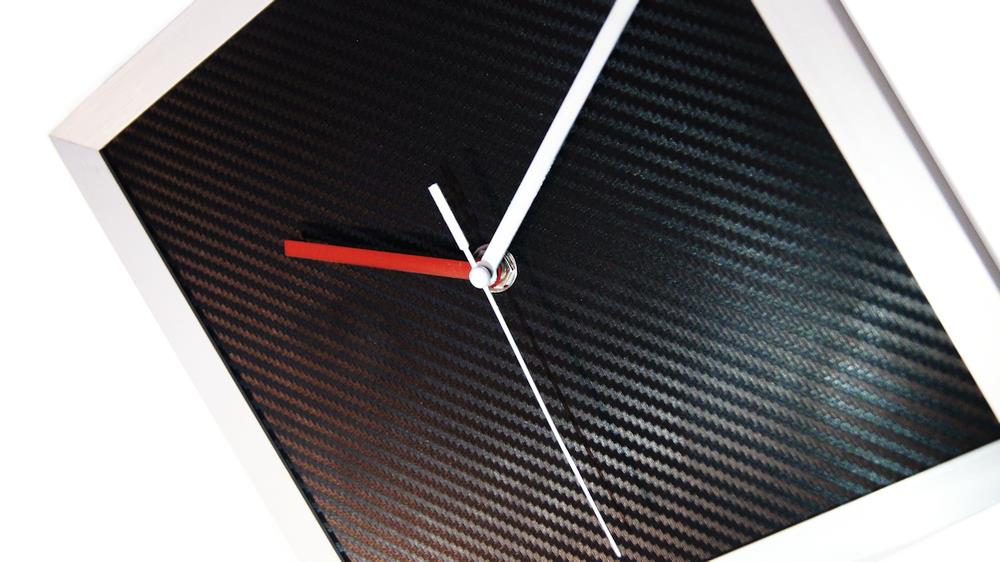 Kolejny autorski projekt zegara, w którym mniejsza tarcza i prostsze wskazówki zrekompensowałem aluminiową ramą. Podstawą tarczy ponownie stało się plexi.
